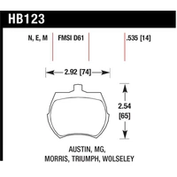 Hawk Performance has dominated Motorsports race tracks for more than 15 years, offering highly-engineered friction products for nearly every type of racing! *Blue-42 ('EE' Compound Code)* Intermediate initial bite, increased mid Mu characteristics, and low to mid-temperature range. *Blue-9012 ('E' Compound Code)* * Medium/High Torque and Temperature Compound * Excellent Brake Modulation * #1 Selling Brake Pad Material for SCCA. *Black ('M' Compound Code)* Medium torque and temperature compound designed to be a good, all-purpose low- cost racing brake pad. * Medium torque and temperature pad * Good cold effectiveness * A good all-purpose low-cost racing brake pad * Good for Dirt Modified and IMCA style pavement Modified * *Optimal Range:* 200 - 700 * *Min/Max Temp:* 100 - 900 * *Torque:* Medium *DR97 ('J' Compound Code)* Excellent static and dynamic coecient of friction. Smooth linear torque. Low pad and rotor wear. For use in drag racing. *MT 4 ('L' Compound Code)* Medium/High torque and temperature compound with medium/high initial bite. For circle track cars under 2800 lbs without high deceleration rates. * High initial bite * Designed for pavement circle track under 2800 lbs * Designed for applications not needing high deceleration rates * *Optimal Range:* 500 - 1000 * *Min/Max Temp:* 400 - 1200 * *Torque:* High *Metallic (MB Compound Code)* High torque with linear in-braking characteristics across temperature ranges, allowing the driver to brake harder, longer without sacrificing the life of the pad. *HT-10 (S Compound Code)* Intermediate to high torque with a smooth initial bite. Very consistent pedal feel. Excellent modulation and release characteristics. *Note:* Hawk Performance burnishes its HP Plus brake pads as a final step in the factory, but all brake pads have to be bedded-in with the rotors (new or used) that they will be used against. Properly bedding-in new brake pads results in a transfer film being generated at the pad and rotor interface to maximize brake performance.