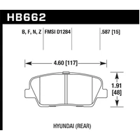 The Hawk HPS Brake Pads unique ferrocarbon formula was developed for street performance using the safety and quality of aerospace and motorsports severe-duty friction technology. High-Performance Street disc brake pads are legendary for increasing stopping power on street-legal vehicles. Increasing the performance of your vehicles braking system is easy when you choose Hawk Performances HPS braking compound. The High-Performance Street compound oers a higher coeficient of friction over stock brake pads and can provide you 20-40% more stopping power and higher resistance to brake fade than most standard replacement pads. Less fade means you will have better pedal feel and more consistent performance in a durable brake pad that generates less brake dust. *Features:* * Aggressive torque * Great rotor & pad wear life * 100-700F operating temp * Virtually noise-free * Smooth braking feel * Consistent brake release characteristics * *Optimal Range:* 100 - 500 * *Min/Max Temp:* 100 - 700 * *Torque:* Low