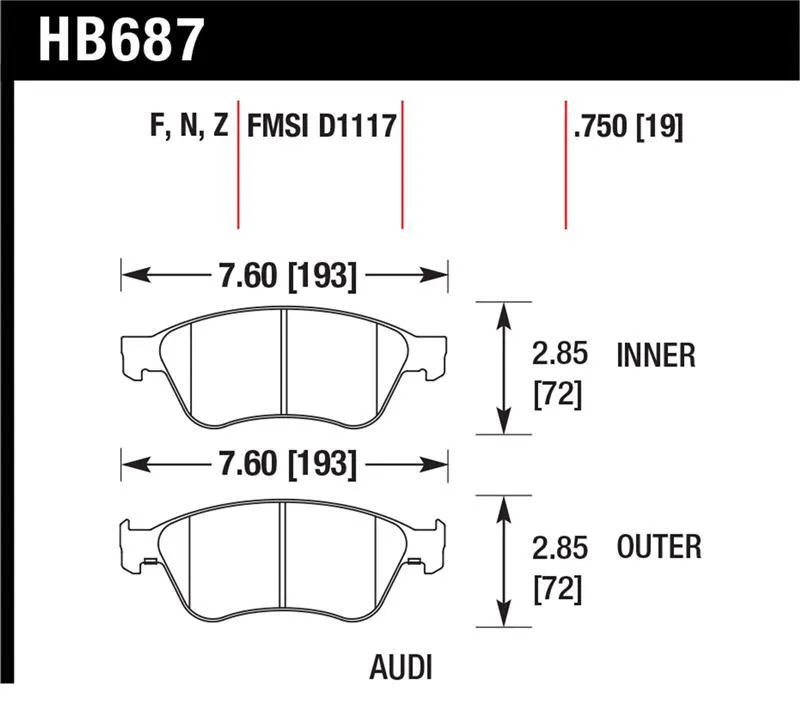 The Hawk HPS Brake Pads unique ferrocarbon formula was developed for street performance using the safety and quality of aerospace and motorsports severe-duty friction technology. High-Performance Street disc brake pads are legendary for increasing stopping power on street-legal vehicles. Increasing the performance of your vehicles braking system is easy when you choose Hawk Performances HPS braking compound. The High-Performance Street compound oers a higher coeficient of friction over stock brake pads and can provide you 20-40% more stopping power and higher resistance to brake fade than most standard replacement pads. Less fade means you will have better pedal feel and more consistent performance in a durable brake pad that generates less brake dust. *Features:* * Aggressive torque * Great rotor & pad wear life * 100-700F operating temp * Virtually noise-free * Smooth braking feel * Consistent brake release characteristics * *Optimal Range:* 100 - 500 * *Min/Max Temp:* 100 - 700 * *Torque:* Low