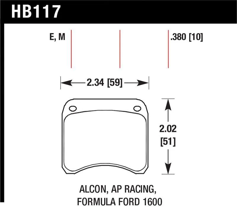 Hawk Performance has dominated Motorsports race tracks for more than 15 years, offering highly-engineered friction products for nearly every type of racing! *Blue 9012 ('E' Compound Code)* Medium/High torque and temperature compound with excellent brake modulation. #1 selling brake pad material for SCCA. * Medium/High Torque and Temperature Compound * Excellent Brake Modulation * #1 Selling Brake Pad Material for SCCA. *Blue MT 4 ('L' Compound Code)* Medium/High torque and temperature compound with Medium/High initial bite. Brake pads designed for circle track cars under 2800 lbs without high deceleration rates. * Medium/High Torque and Temperature Compound * Medium/High Initial Bite * Brake Pads Designed for Circle Track Cars Under 2800lbs Without High Deceleration Rates *Black ('M' Compound Code)* Medium torque and temperature compound designed to be a good, all-purpose low- cost racing brake pad. Can be used as a Dirt Circle Track and Stock Car application. * Medium Torque and Temperature Compound * Exceptional Stopping Performance * Designed to be a Good, All-Purpose, Low-Cost Racing Brake Pad *DR97 ('J' Compound Code)* Excellent static and dynamic coefficient of friction. Smooth linear torque. Low pad and rotor wear. Brake pads specifically designed for use in drag racing applications. *Note:* Hawk Performance burnishes its HP Plus brake pads as a final step in the factory, but all brake pads have to be bedded-in with the rotors (new or used) that they will be used against. Properly bedding-in new brake pads results in a transfer film being generated at the pad and rotor interface to maximize brake performance.
