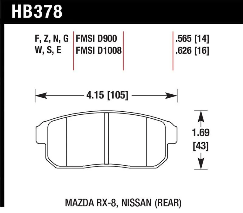 The Hawk HPS Brake Pads unique ferrocarbon formula was developed for street performance using the safety and quality of aerospace and motorsports severe-duty friction technology. High-Performance Street disc brake pads are legendary for increasing stopping power on street-legal vehicles. Increasing the performance of your vehicles braking system is easy when you choose Hawk Performances HPS braking compound. The High-Performance Street compound oers a higher coeficient of friction over stock brake pads and can provide you 20-40% more stopping power and higher resistance to brake fade than most standard replacement pads. Less fade means you will have better pedal feel and more consistent performance in a durable brake pad that generates less brake dust. *Features:* * Aggressive torque * Great rotor & pad wear life * 100-700F operating temp * Virtually noise-free * Smooth braking feel * Consistent brake release characteristics * *Optimal Range:* 100 - 500 * *Min/Max Temp:* 100 - 700 * *Torque:* Low