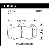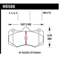 High torque with less initial bite than DTC 70. Superior release and torque control characteristics. Brake pads designed for cars with high deceleration rates with or without down force. Recommended for use with DTC-70 when split friction between front and rear axle is desired.