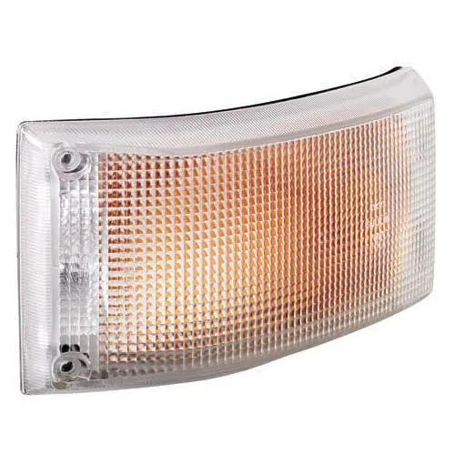 Curved front direction indicator with colourless front lens and internal amber filter producing the required amber light when activated. Includes separate front position lamp function. Supplied complete with protective rubber boot.