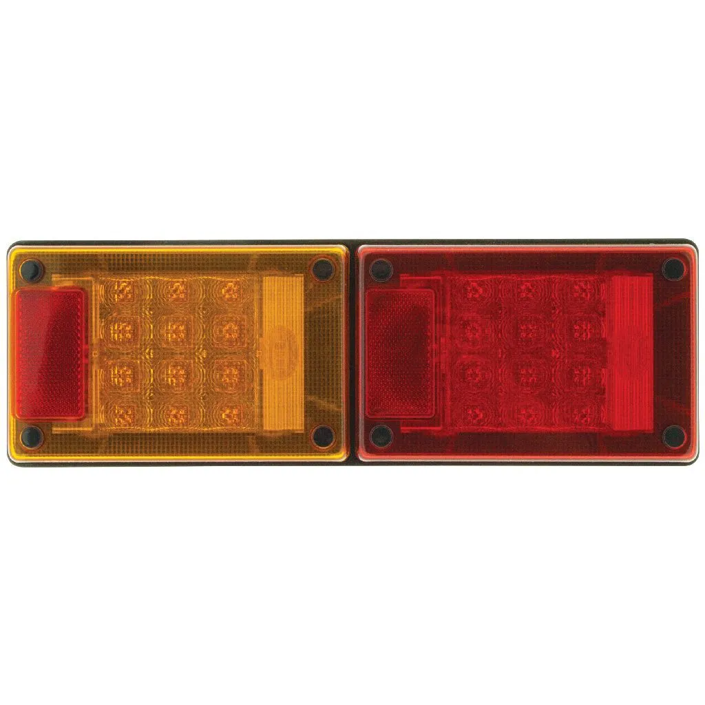 Jumbo-S LED stop rear position rear direction indicator lamp with 23cm2 red retro reflectors. Lamps are pre- assembled and wired into housing for easy installation. Features HCS Technology with ISO 13207-1 compliance.