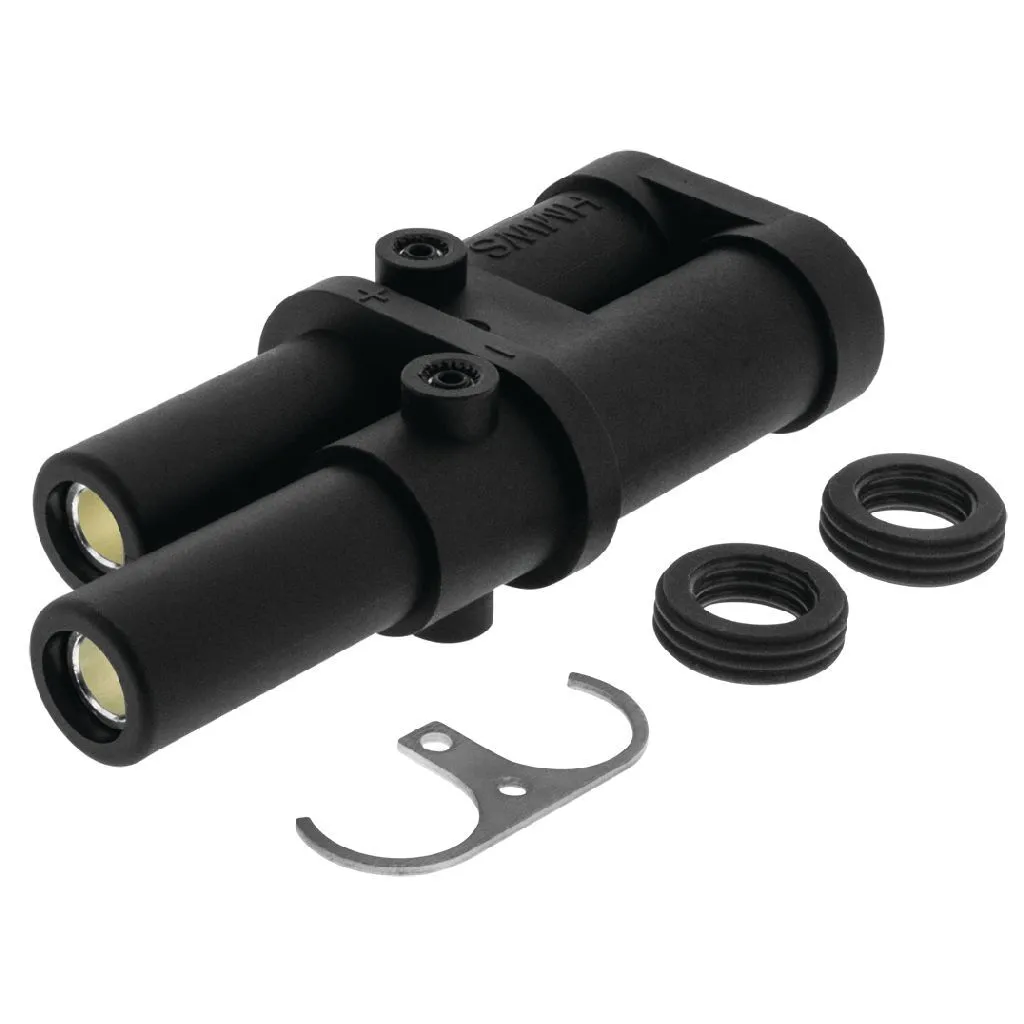 Heavy duty high capacity Jump-Start Connectors for vehicles and equipment. Ideal for use where access to terminals is restricted or dangerous. Eliminates chance of cross polarity connections through the specially shaped plug. Reduces chance of sparking and possible ignition of flammable materials. Kit contains terminal bracket and cap.