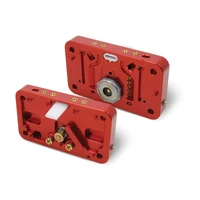 - Shiny with red anodized billet aluminum metering blocks and base plate