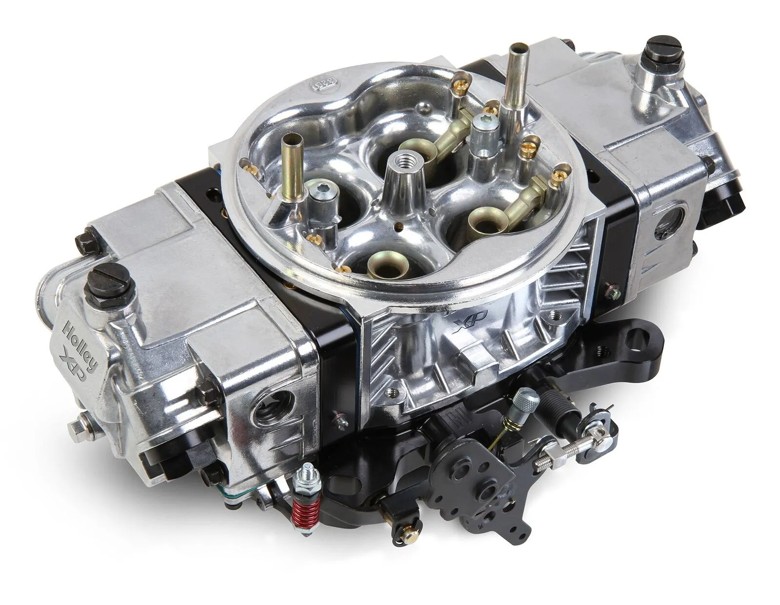 Xtreme Performance - Holley Ultra XP carburetors! Ultra XP carbs are up to 38% lighter than our traditional race carbs, have fuel capacity that is 20% greater and 30 other new features! They're available in our all-new Hard Core Gray hard coat anodized finish with Black billet for improved corrosion protection. They're also available in natural tumble-polished aluminum with your choice of Black or Red metering blocks and base plate. The Aluminum Ultra XP comes in 600, 650, 750, 850, and True 950-CFM. Holley Ultra XP carburetors offer new features such as an integrated idle bypass valve that allows for idle adjustments while maintaining the correct throttle plate to transfer slot relationship, high capacity fuel bowls which feature 20% more fuel capacity to eliminate starvation, integrated fuel shelf to minimize fuel aeration and internal baffling to control fuel slosh. Other features include all aluminum construction, fully tunable billet metering blocks, billet base plate, adjustable secondary linkage and knurled (hand adjustable) curb idle screws. Holley Ultra XP carburetors are the ultimate in square bore race carburetors!