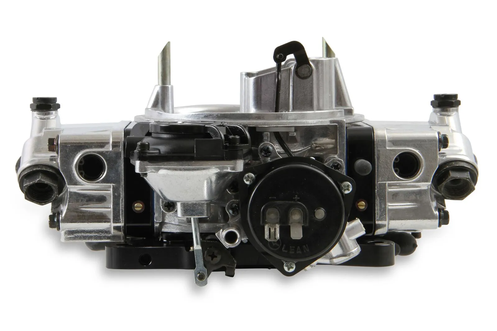 - Shiny with black anodized billet aluminum metering blocks/base plate for good looks and true gasket sealing