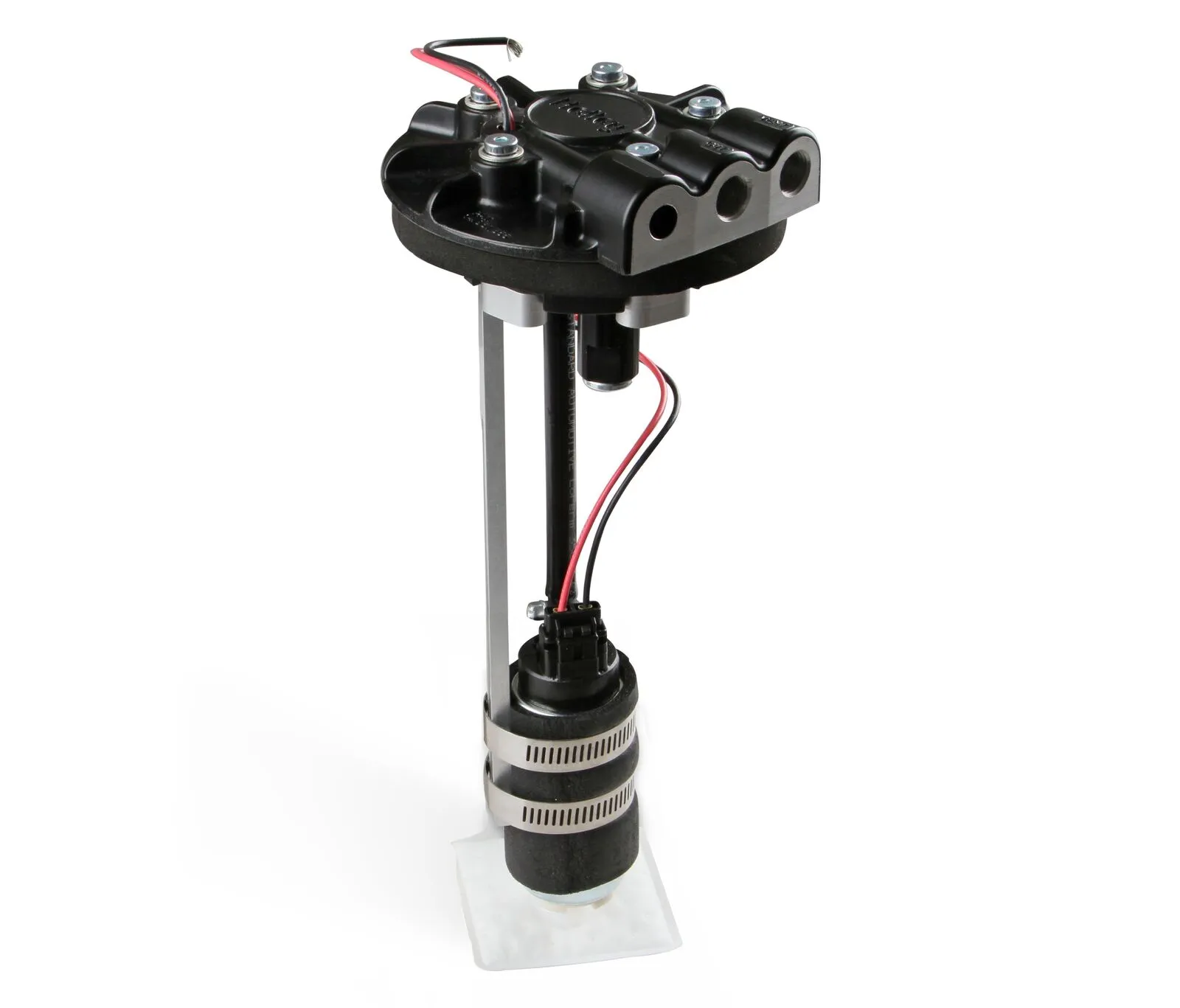 Now you can convert your factory tank or fuel cell to an in-tank fuel system quickly and easily! The conversion is easily accomplished with basic tools and requires no welding or fabrication. The aluminum module design includes a die cast pump hanger bracket to control pump vibration while also providing a low profile design to fit where space is at a premium. Holley's innovative clamping system and integrated fuel pump makes it easy. Once installed, hook up your fuel lines and your power source/ground and you're off and running! NO hassle!