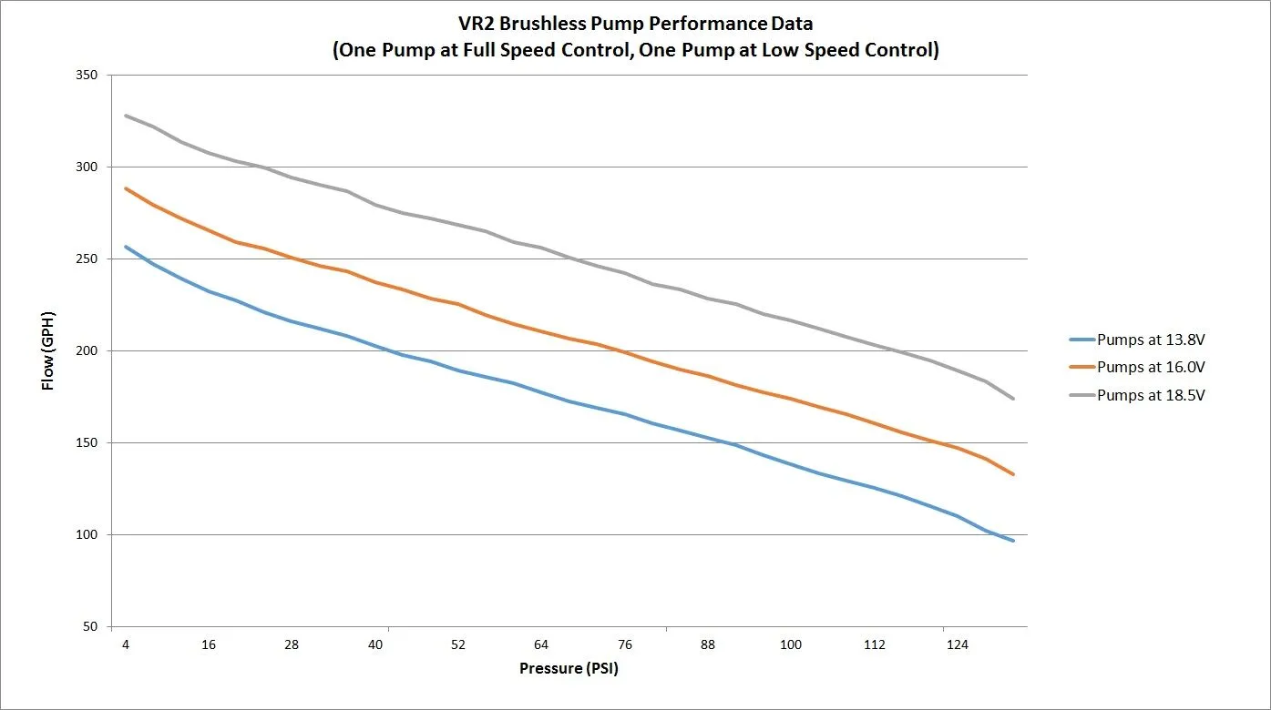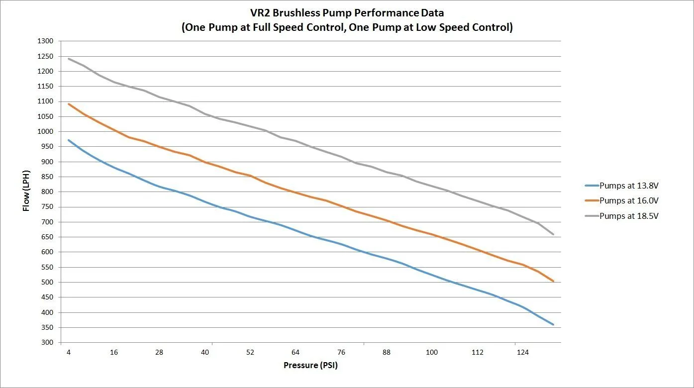 for high fuel consumption requirements. The VR2 includes (2) controllers for precise control of both pumps independently of each other. Both the VR1 and VR2 pumps are proven for 18.5V compatibility.