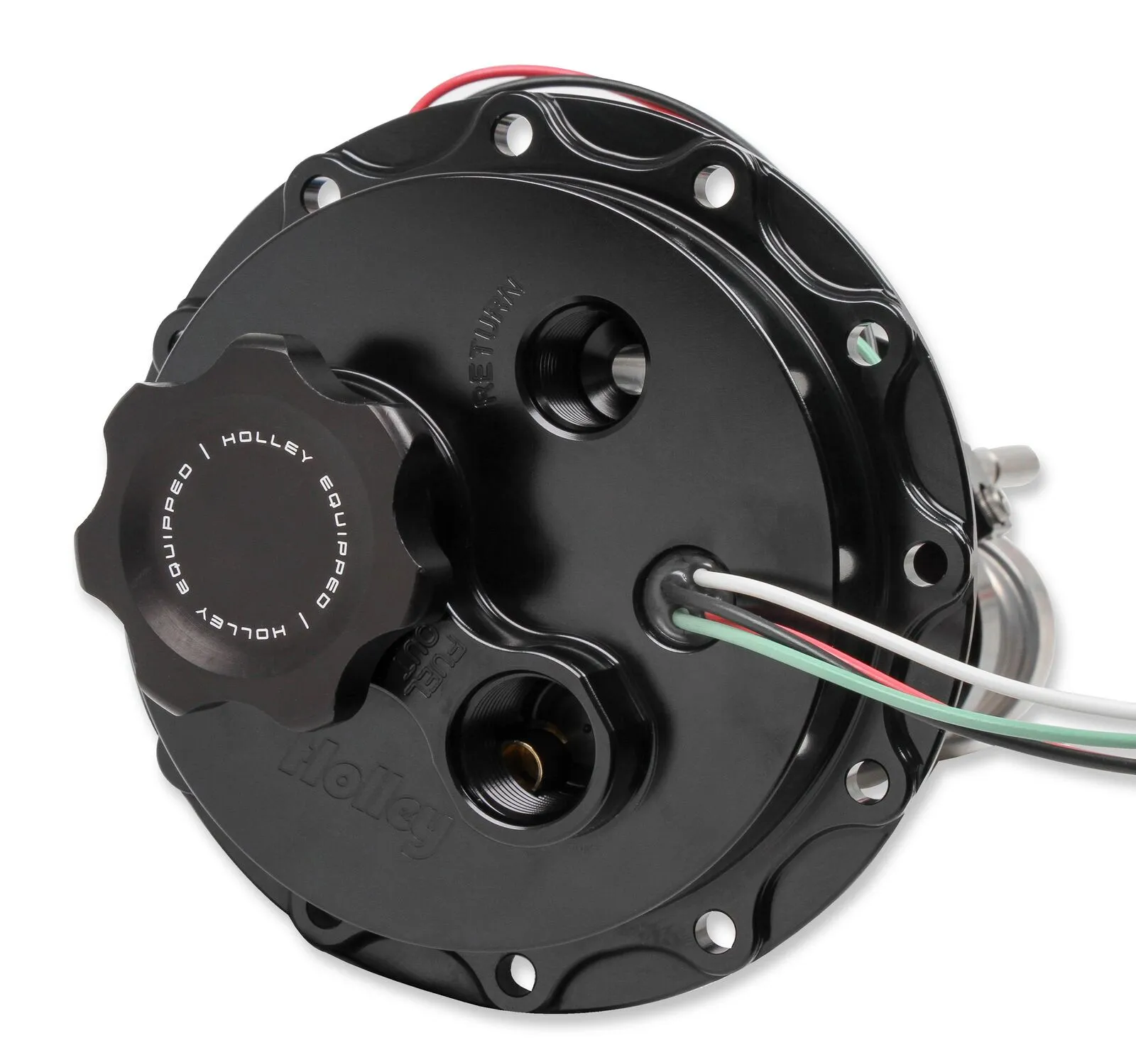 Holley is excited to introduce our Holley Fuel Cell EFI Pump Modules. While the name includes EFI, these modules can be used as an upgrade for carbureted systems as well with the proper regulator. The modules were designed to drop in as a direct replacement for your existing 12 bolt flange fuel cell cap assembly. The billet top flange includes an 8AN inlet port, a 10AN outlet port, and a fuel filler cap. The fuel pump depth is fully adjustable from 7.5" to 12" deep. The EFI modules are available with single and dual 255 LPH and 450 LPH fuel pumps. The module kits include all the hardware to install into your existing fuel cell. All that you need to add is your fuel line.