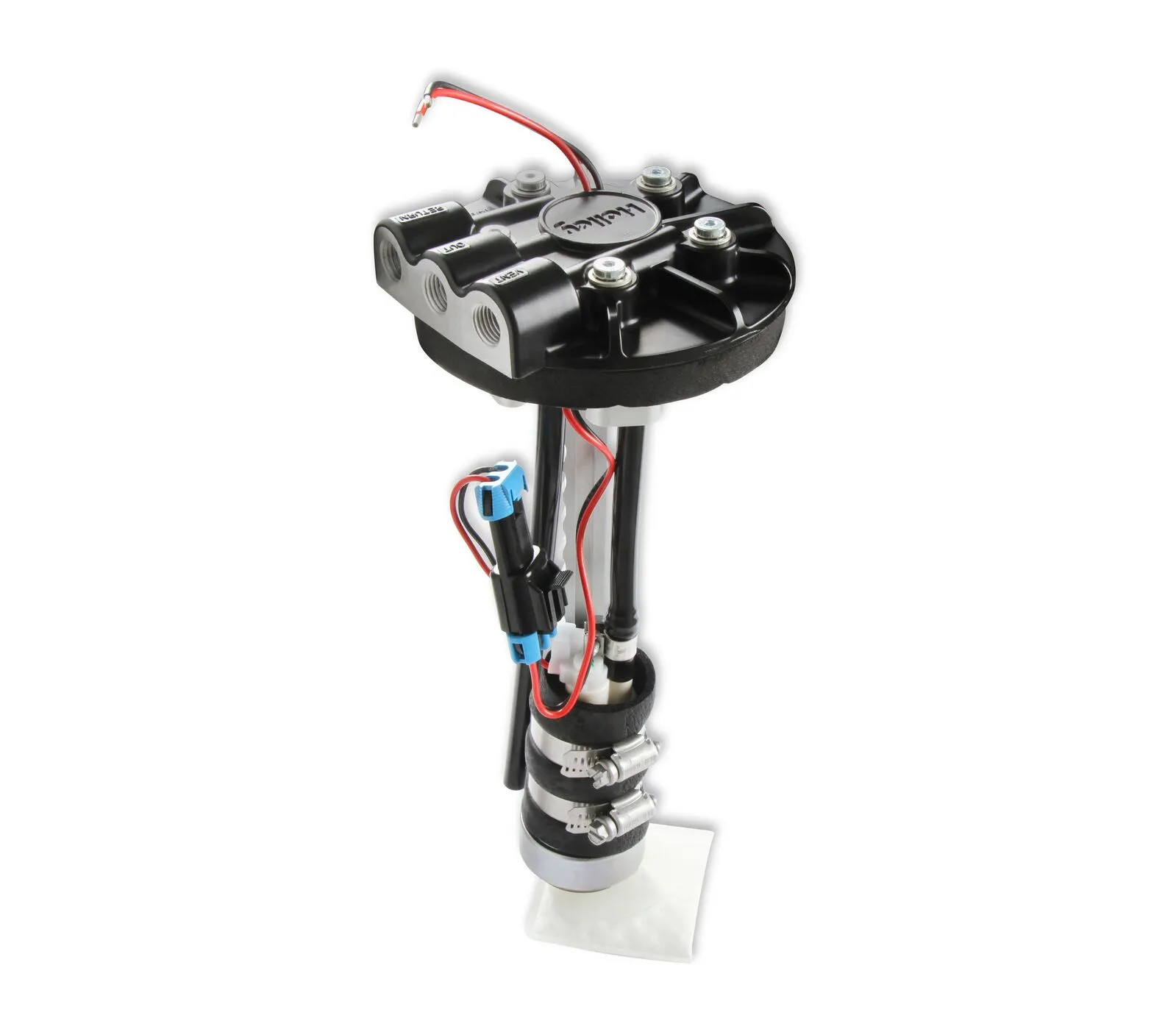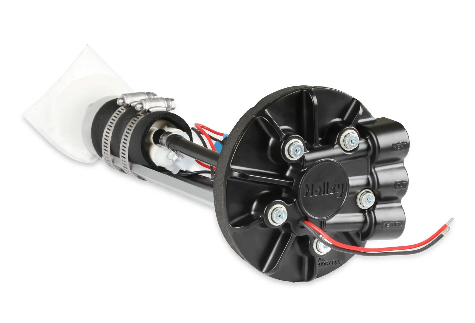 Now you can convert your factory tank or fuel cell to an in-tank EFI fuel system quickly and easily! The conversion is easily accomplished with basic tools and requires no welding or fabrication. The aluminum 5 inch diameter module design includes a die cast pump hanger bracket to control pump vibration while also providing a low profile design to fit where space is at a premium. Holley's innovative clamping system and integrated fuel pump makes it easy. Once installed, hook up your fuel lines and your power source/ground and you're off and running! NO hassle!