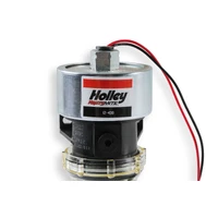 Holley Mighty Mite pumps are suited for tough, hard-working applications. From truck refrigeration units, marine generators, and gasoline and diesel industrial applications, these pumps have the proven performance, quality, and dependability that you can count on. They are self-priming and self-regulating at 9-11.5 psi and can deliver 33 GPH. Compatible with all types of fuels and additives, these pumps are the answer for your needs. Rugged solid state design pumps are a simple two wire hook-up and made in the USA. A regulator may be needed for carbureted applications requiring less fuel pressure. We recommend the Holley 12-803 or 12-804 fuel pressure regulator.