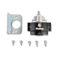 Holley® Billet Fuel Pressure Regulators are part of a complete line of fuel system products from Holley®. They are precision machined from 6061-T6 billet aluminum for strength and durability. They feature a black bright dip anodized body and a clear bright dip anodized top for corrosion resistance and good looks. The Holley 12-841 fuel pressure regulator features 3/8" NPT in/out ports and a 3/8 NPT return port.