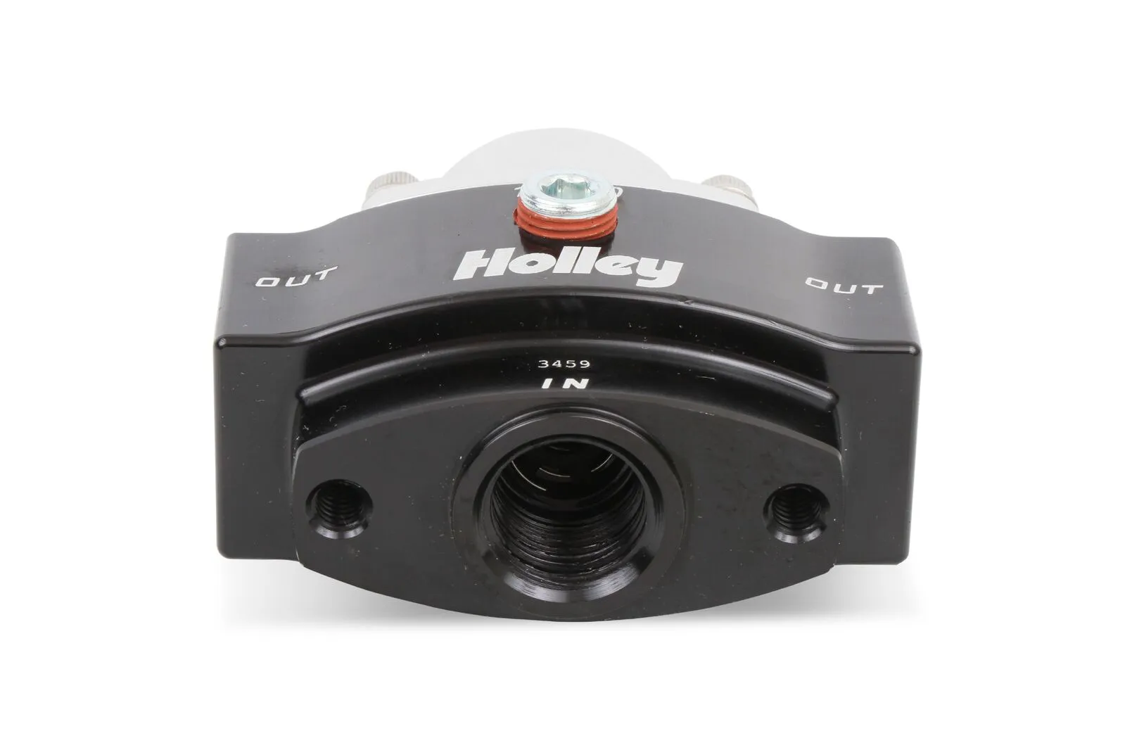 Holley® Billet Fuel Pressure Regulators are part of a complete line of fuel system products from Holley®. They are precision machined from 6061-T6 billet aluminum for strength and durability. They feature a black bright dip anodized body and a clear bright dip anodized top for corrosion resistance and good looks. The Holley 12-842 fuel pressure regulator features 3/8" NPT in/out ports and a 3/8 NPT return port.