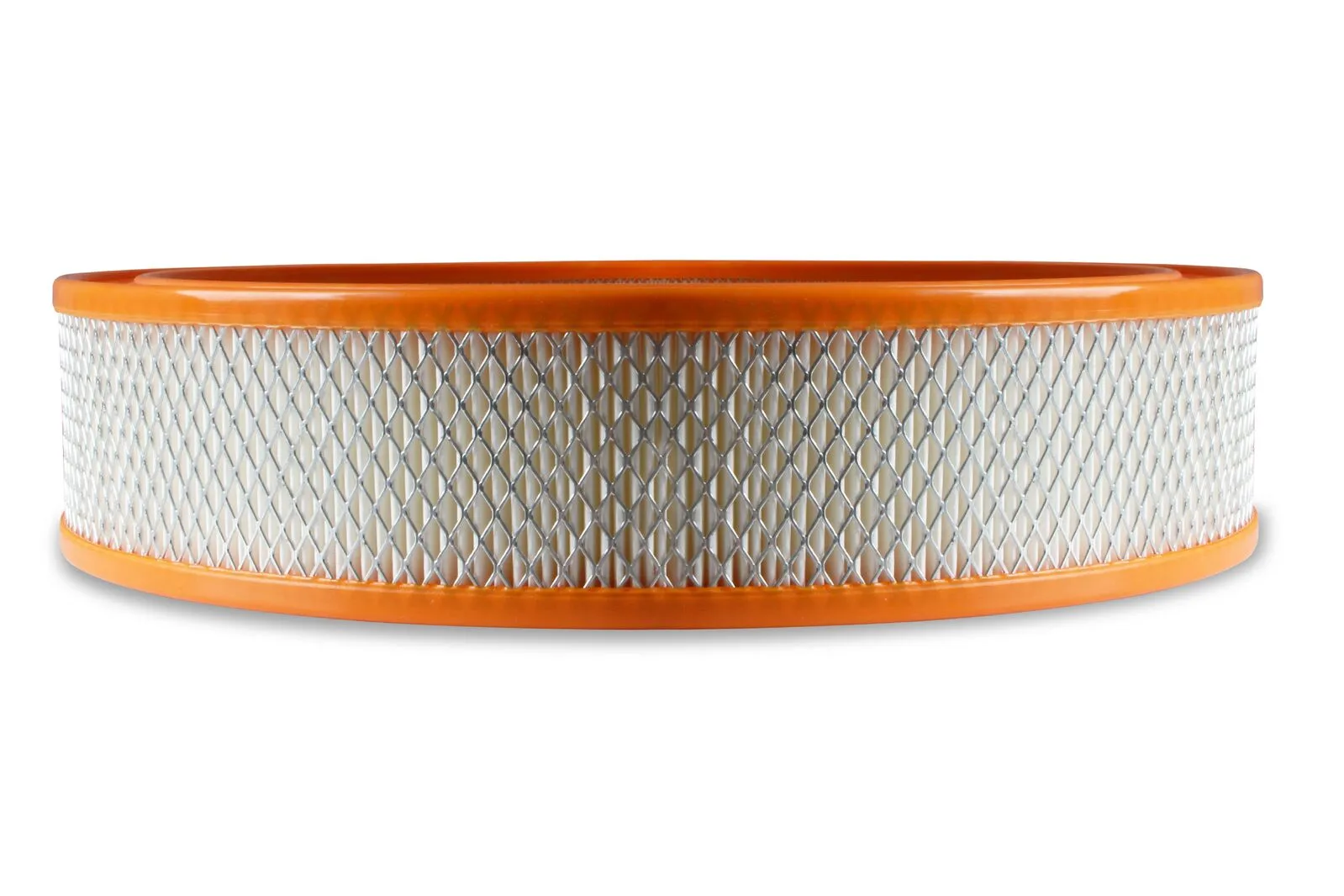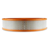 This high quality replacement white paper filter is a must when your old filter becomes dirty. Features an orange rubber ring to give you that vintage look. Designed to keep your engine running at peak performance under any driving conditions. Fits all 14" round air cleaners.