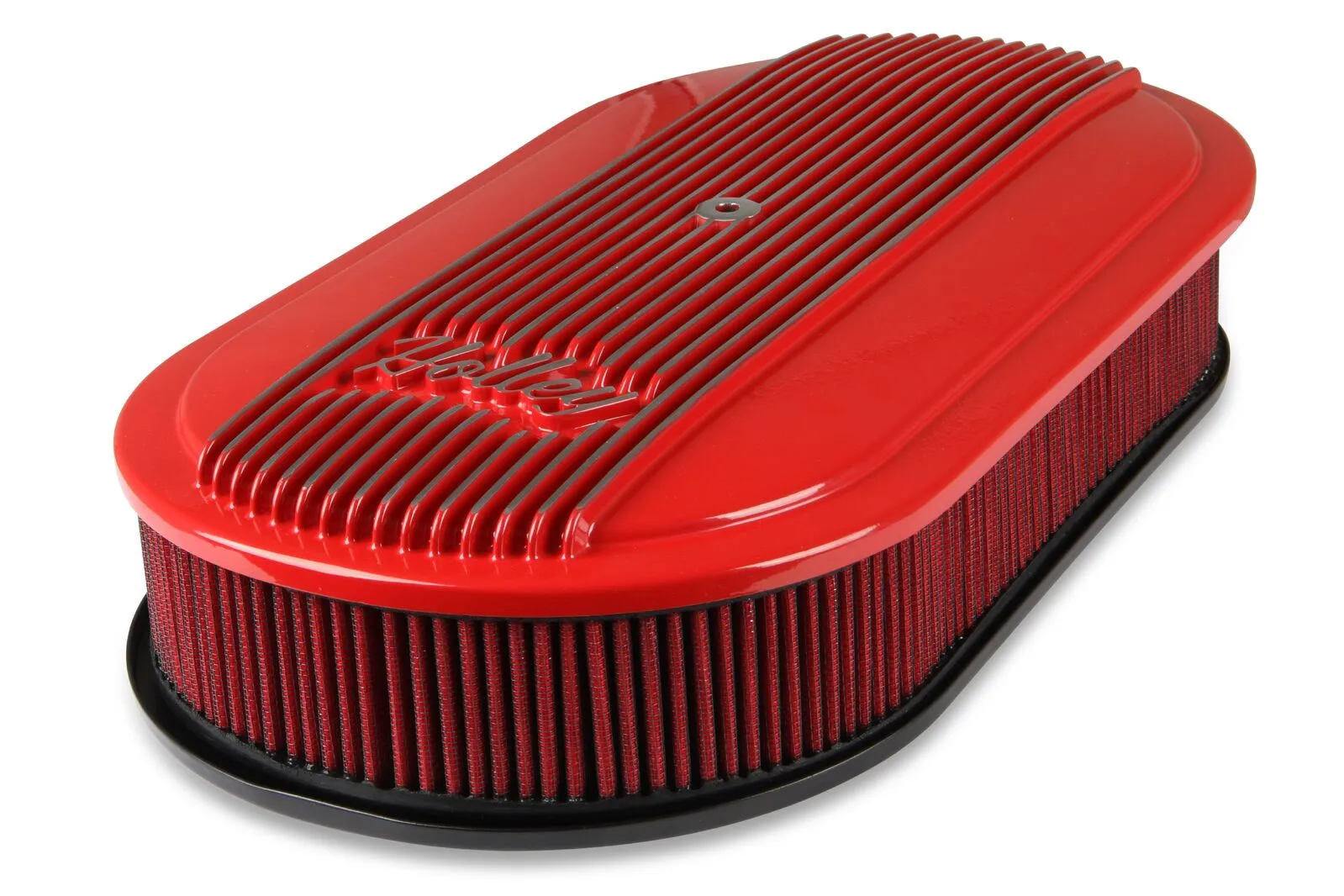 The oversized air cleaner look was king in the muscle car era, and we wanted to take engine bay styling back to that nostalgic time with these Holley Vintage Series Oval Air Cleaner assemblies. Each air cleaner assembly includes a durable cast aluminum Vintage Series finned lid, a stamped steel 1/2" raised baseplate, a 2.5" tall premium washable and reusable filter element, and all hardware needed for easy installation.