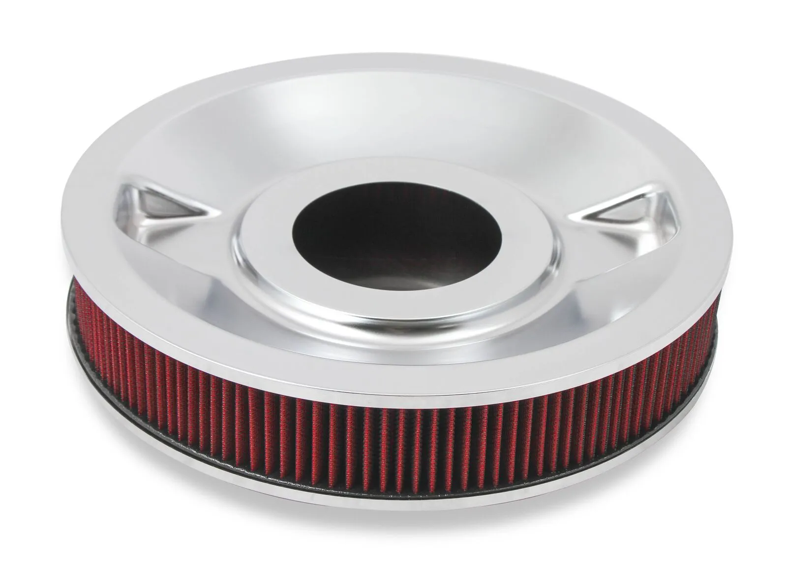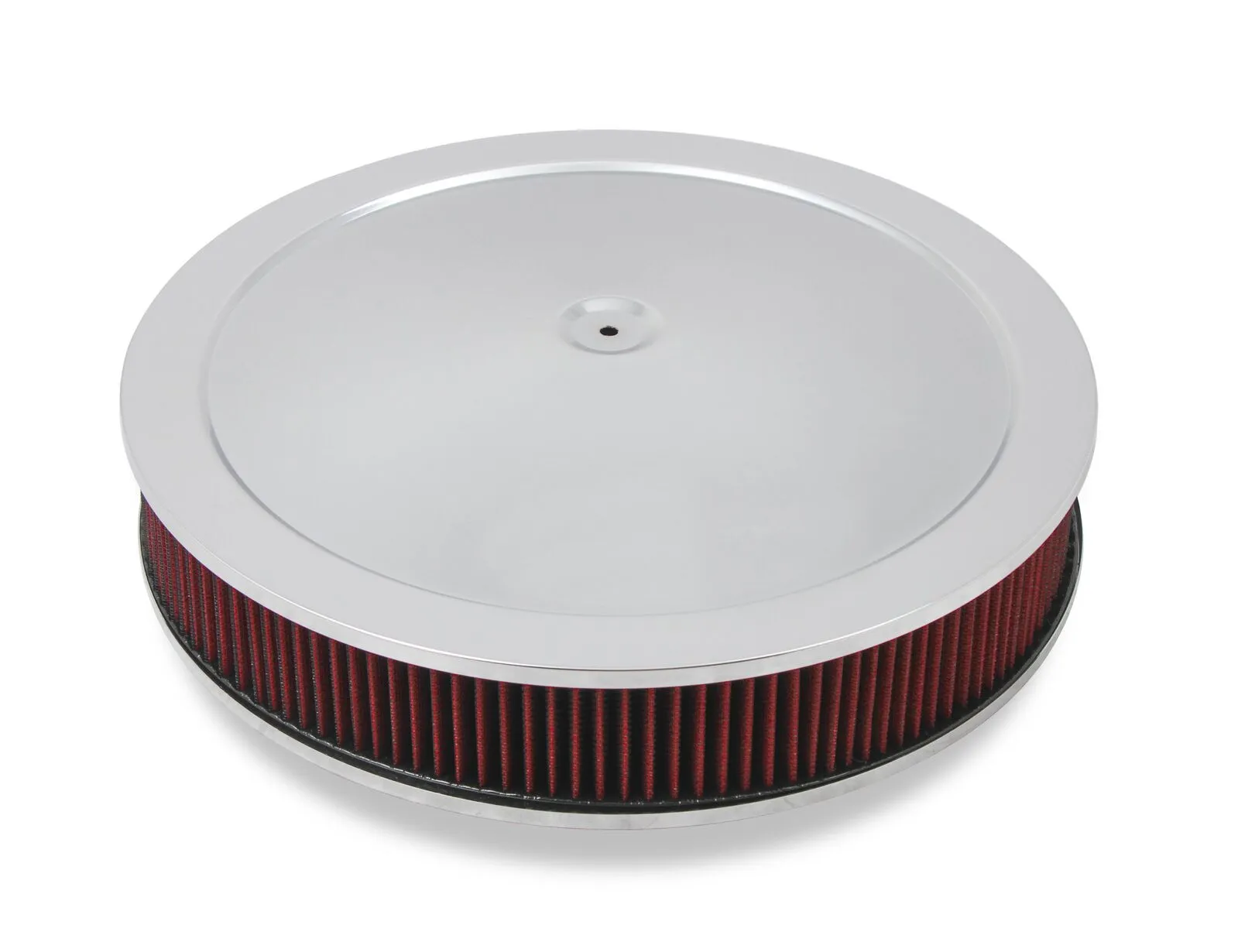 Holley is proud to offer another breath of fresh air with our new 16" drop-base 4150 air cleaner assemblies and filters. Available in 3", 4" or 6" filter heights and in chrome or EDP black. The assemblies are available with a red washable gauze element or a white pleated paper element to offer the look you have in mind. The tops are so large and smooth we decided to leave them plain for a nice stealth look, or to use as a canvas for creating your own look. They feature a 15/16" drop-base so hood clearance is gained above without creating clearance issues below.