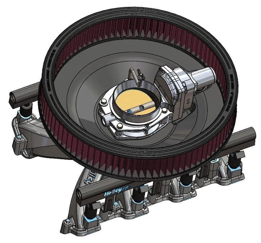 • Can be installed on any vehicle running a top mounted 4150/4BBL EFI capable intake manifold with LS3 DBW wiring components