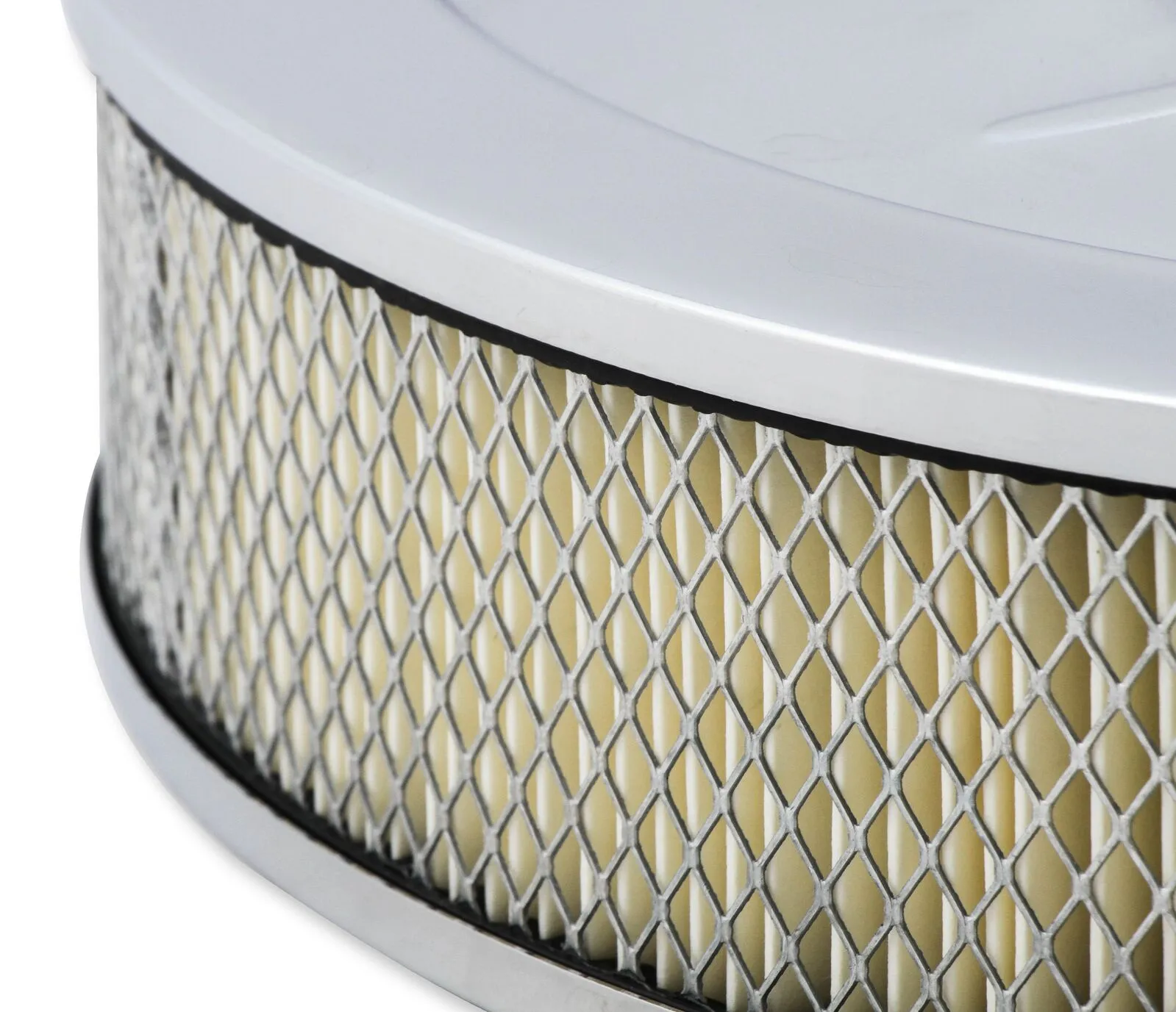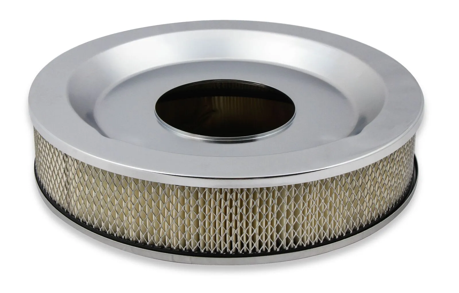 Complete your Sniper upgrade with our new 14" Sniper air cleaner assemblies. Each air cleaner assembly includes a stamped steel lid with an embossed Holley Sniper logo, a 1" drop base specifically designed for Sniper EFI applications, your choice of a 3" or 4" paper filter element, and all necessary mounting hardware. The included drop base fits all carbs and throttle bodies with a 5-1/8" neck - more specifically Sniper EFI 4150 throttle bodies with clearances for front mounted fuel fittings*, and Sniper EFI 2300 throttle bodies. Available in both black and chrome finishes to best match your SniperEFI unit.