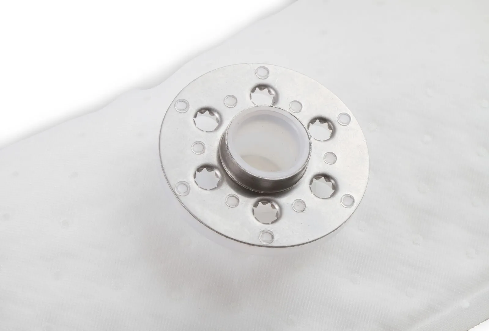 The latest Hydramat design is a shorter 8" version of our popular 16-111 that includes an 11mm outlet that connects to the TI 450LPH and other pumps that use the same attachment design. Two models are available with either a center outlet or offset end outlet to help when space is limited in your tank. The outlet has 6 lock pin positions to allow you to index the Hydramat on the fuel pump for custom applications depending on your fuel tank or cell setup. The multiple pin locking feature on the pump inlet allows for removal and repositioning without damage or loss of retention. This is a huge advantage over the "one use only" filter socks that are included with most pumps.