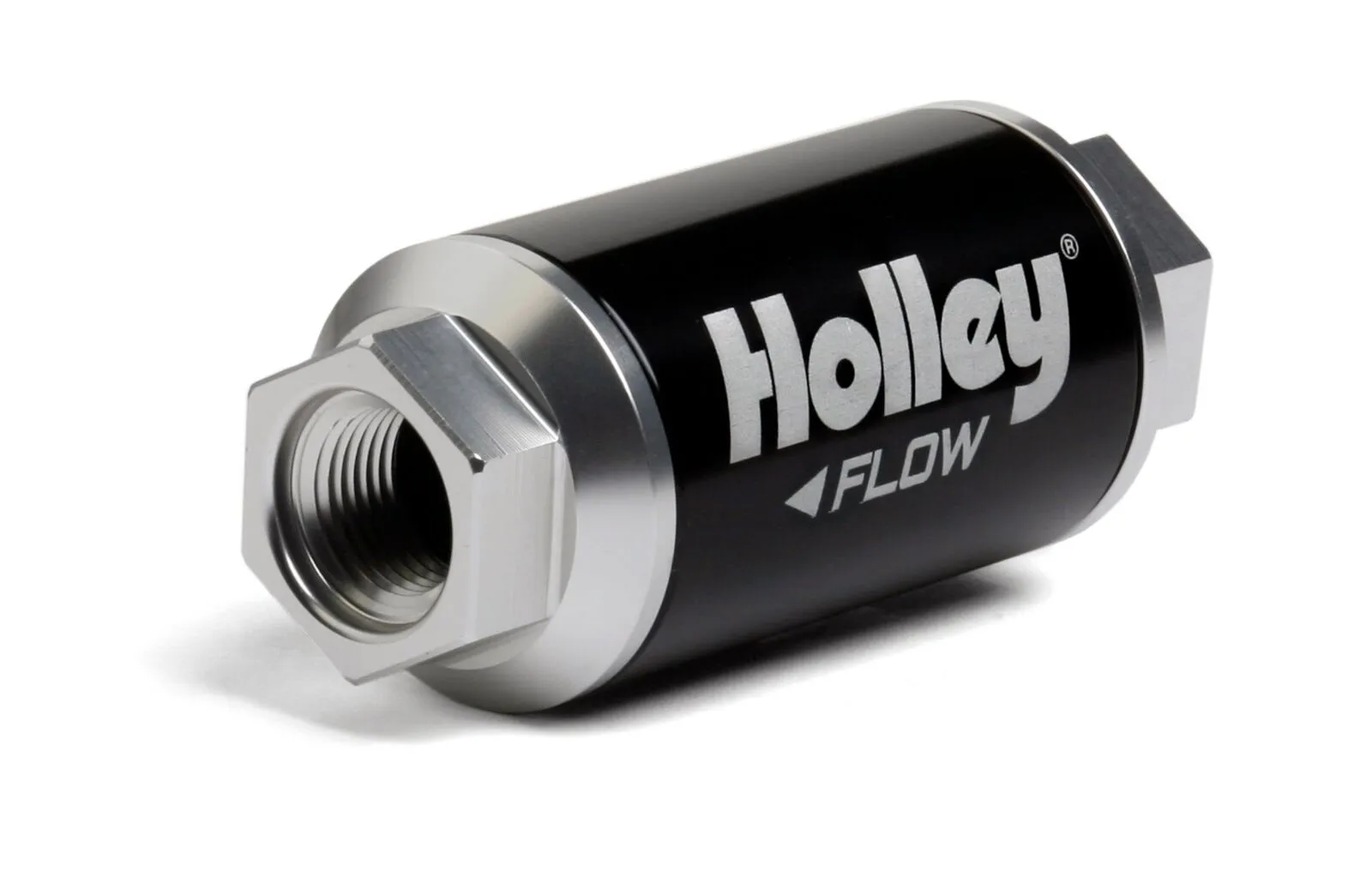 Holley's new HP Billet Fuel Filters are part of the complete HP Fuel Systems product line. HP Billet fuel filters are precision CNC machined from 6061-T6 billet aluminum for strength and durability. They feature a black bright dip anodized body and clear bright dip anodized ends for superior corrosion resistance and good looks. The Holley 162-562 fuel filter features 3/8" NPT inlet and outlet ports. Replacement elements are also available.