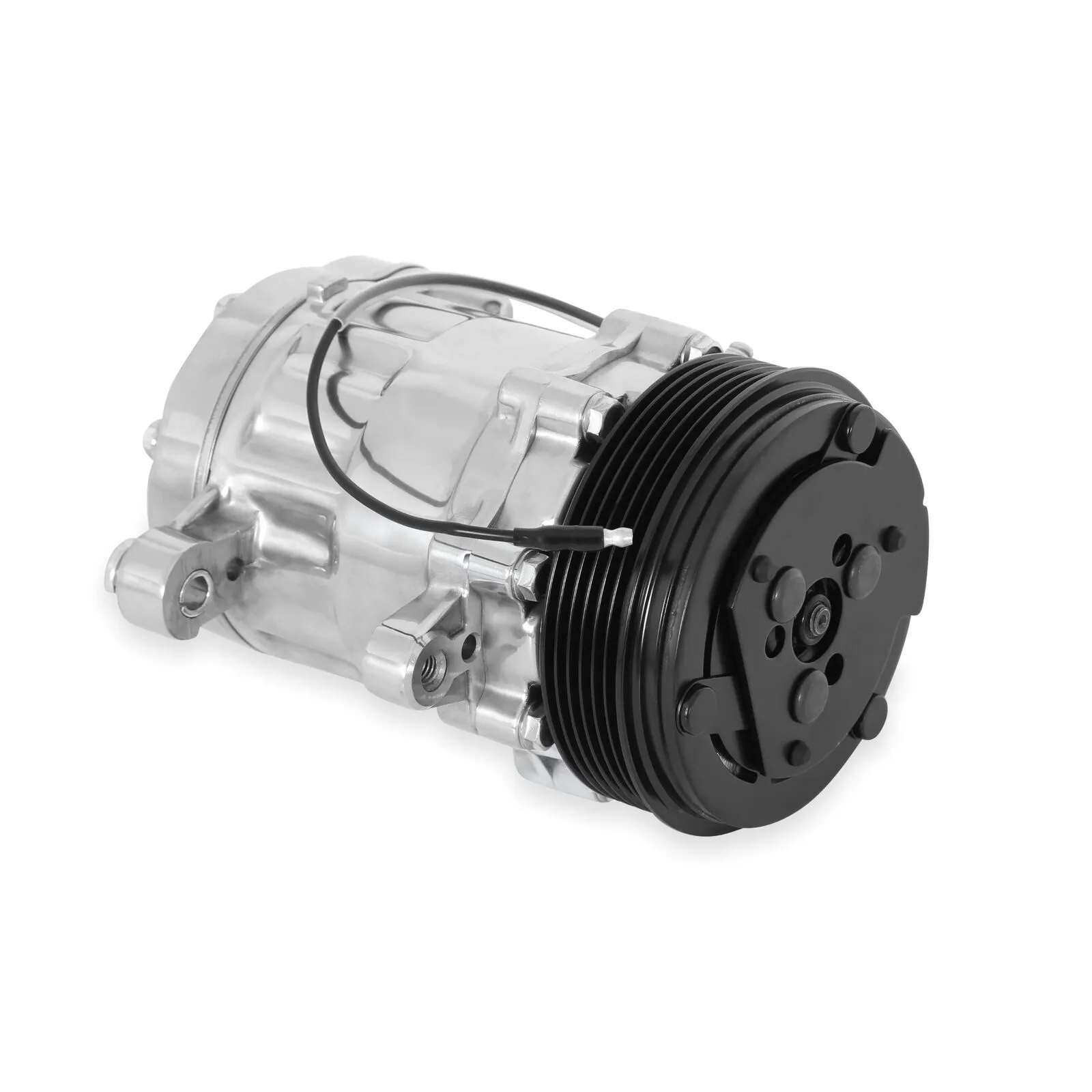 Polished SD7 is the compact high performer of the Holley compressors. It tolerates bursts of higher RPM better than other compressors and has a light weight clean design. This also is an OE manufactured compressor. (Sanden)