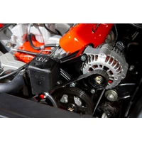 Utilizes commonly available and affordable GM alternators and power steering pumps