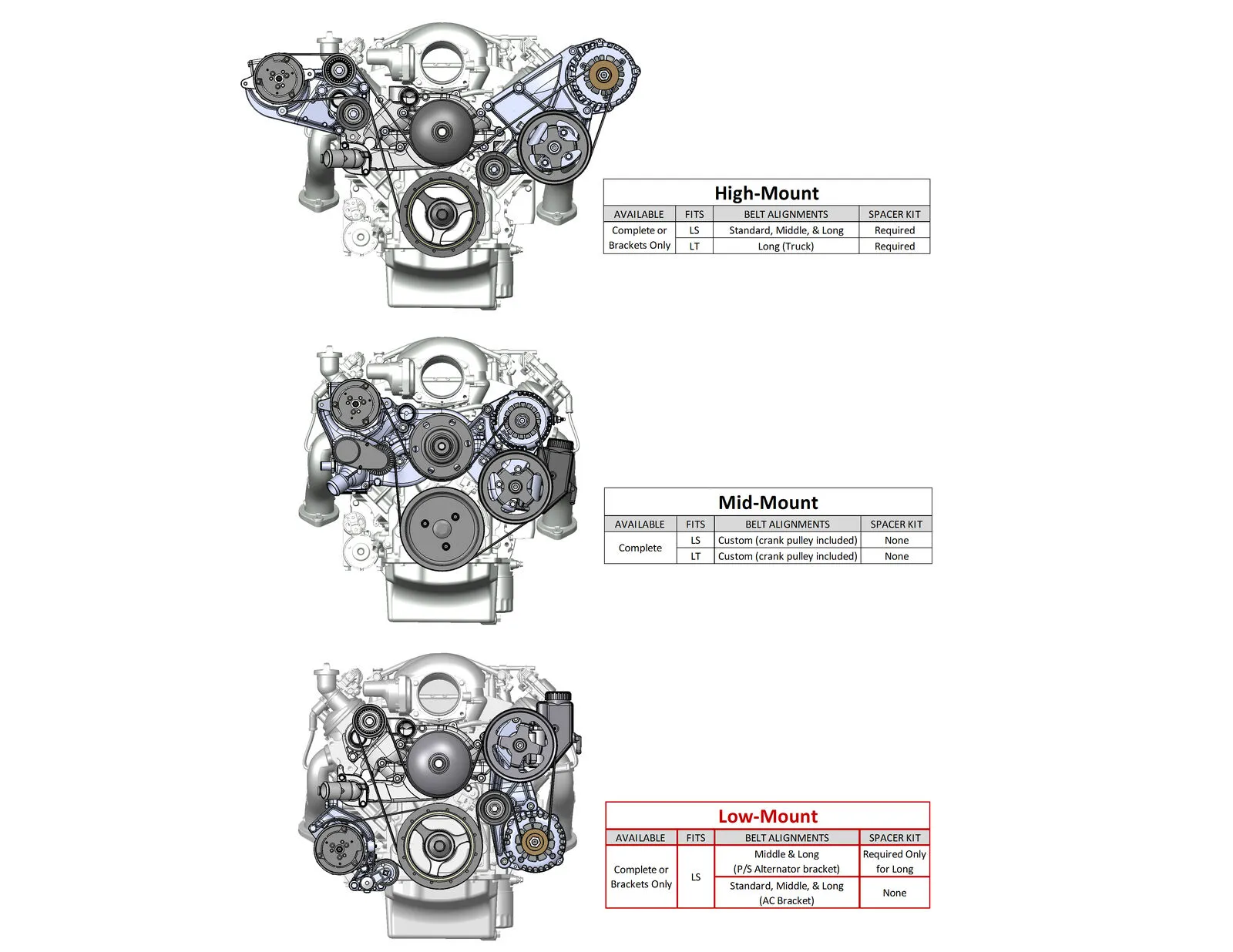"Holley's new Low-Mount Accessory Drive Brackets and Complete Systems have the components tucked in tighter to the block and mounted lower for a more attractive and compact package. Ideal for LS engine swaps with limited space or where a low, more attractive appearance is desired.
