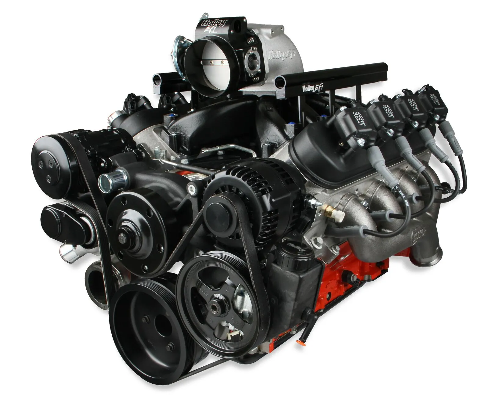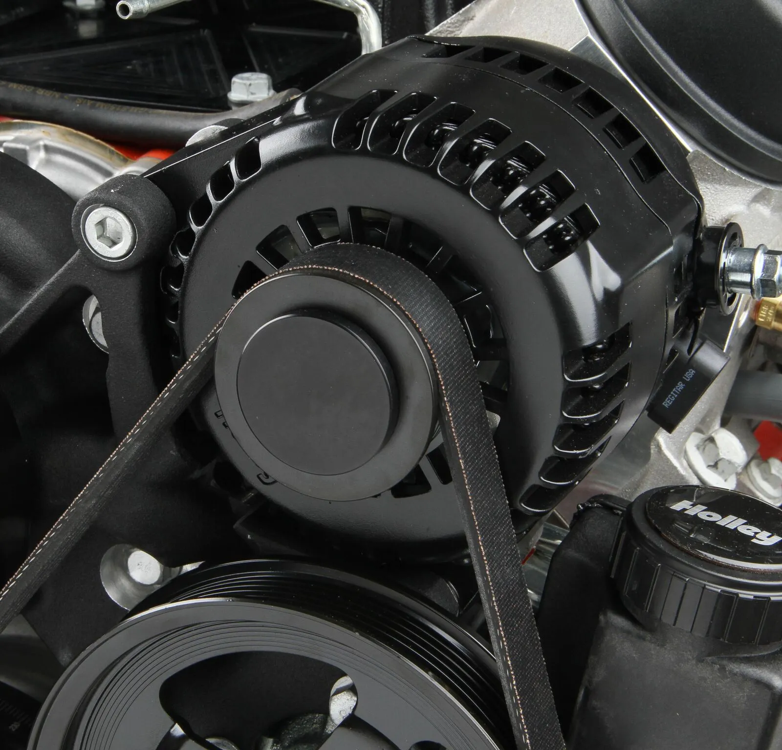 Submit A RequestHolley's Premium Mid-Mount complete accessory system has all accessories pulled in tighter than other accessory drives. At the heart of the system is a "bracketless" design, where the accessories bolt directly to the water pump for a clean, integrated form. The design offers superb engine visibility to show off your horsepower, not your accessories. Among the many swap friendly features are bottom heater outlets for clearance in tight applications. The Holley designed alternator is just as innovative. This premium alternator utilizes 6-phase technology as found on the C7 Corvette. The water pump also shares its design efficiencies with that of the C7 Corvette. The compact and reliable SD7 A/C compressor and Type II P/S pump with baffled reservoir are also integrated.