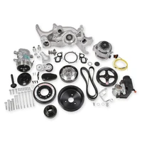 When we say "complete", we mean complete. The Mid-mount system comes with everything you need. All accessories are included; the water pump, A/C compressor, Alternator, P/S pump with reservoir, and an SFI certified damper w/hard anodized billet crank pulley. All pulleys and the belt are supplied. Even heater hose adapters, power steering to -6 AN hardline, and the alternator plug/harness are included. Easy assembly was a priority during the entire development of this accessory solution. Color graphical instructions walk you through every step of the ultra-easy installation.