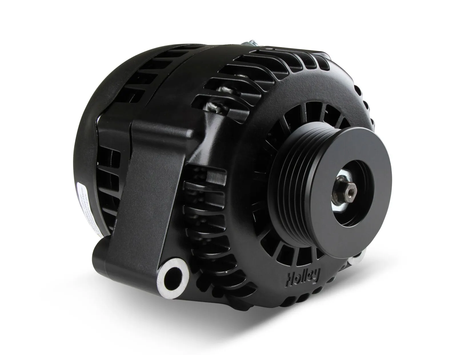 Holley's Premium Mid-Mount complete accessory system has all accessories pulled in tighter than other accessory drives. At the heart of the system is a "bracketless" design, where the accessories bolt directly to the water pump for a clean, integrated form. The design offers superb engine visibility to show off your horsepower, not your accessories. Among the many swap friendly features are bottom heater outlets for clearance in tight applications. The Holley designed alternator is just as innovative. This premium alternator utilizes 6-phase technology as found on the C7 Corvette. The water pump also shares its design efficiencies with that of the C7 Corvette. The compact and reliable Type II P/S pump with baffled reservoir are also integrated.