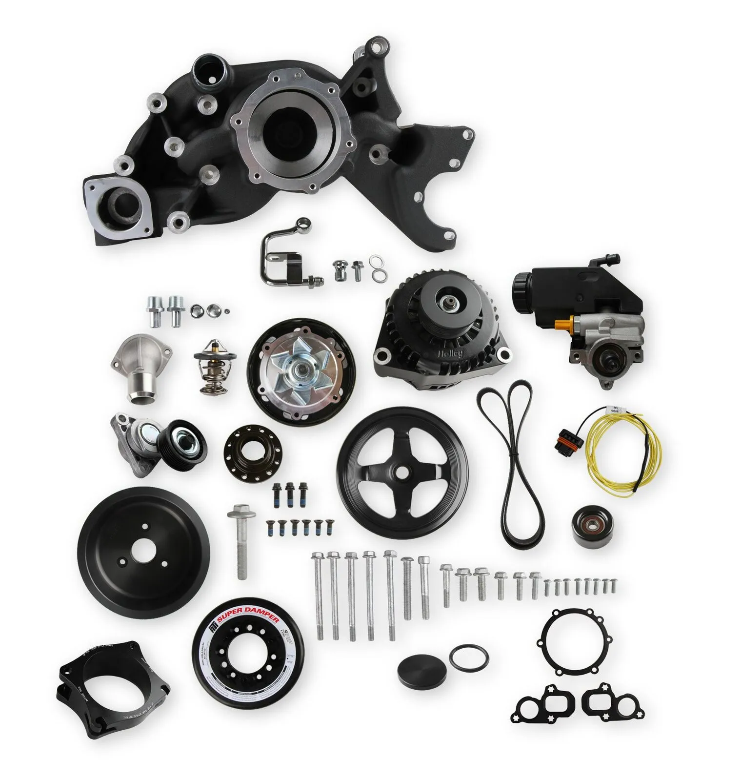 Submit A RequestHolley's Mid-Mount Accessory Drive System is now offered for the serious racer in mind. If you need a front drive system for your LS engine racecar, they are now available without air conditioning and power steering depending upon your needs!