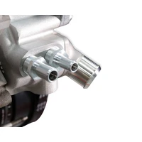 Holley's Premium Mid-Mount complete accessory system has all accessories pulled in tighter than other accessory drives. At the heart of the system is a "bracketless" design, where the accessories bolt directly to the water pump for a clean, integrated form. The design offers superb engine visibility to show off your horsepower, not your accessories. Among the many swap friendly features are bottom heater outlets for clearance in tight applications. The Holley designed alternator is just as innovative. This premium alternator utilizes 6-phase technology as found on the C7 Corvette. The water pump also shares its design efficiencies with that of the C7 Corvette.