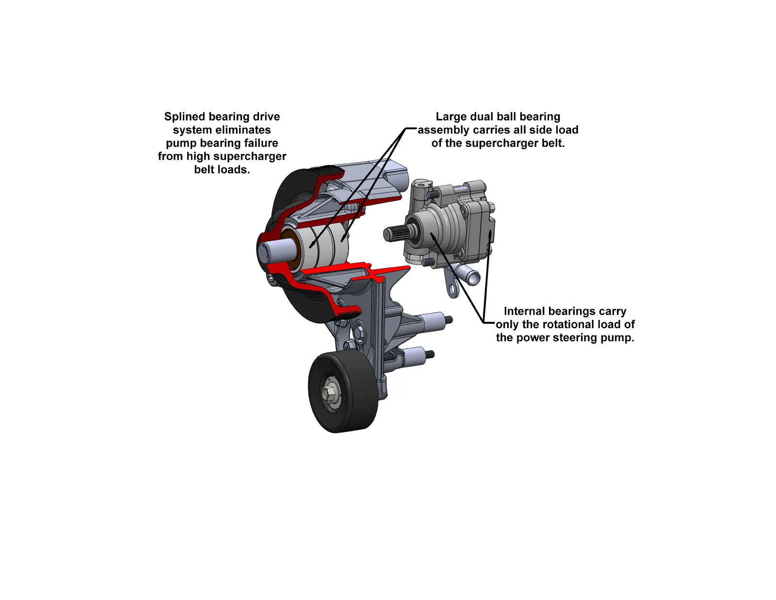 • OE pulley ratios for optimal accessory performance, allows for larger SC crank pulley