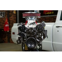 When we say "complete," we mean complete. The Mid-mount system comes with everything you need. All accessories are included; the water pump, A/C compressor, alternator, and P/S pump with reservoir. All pulleys and the belt are supplied. Even A/C line adapter, heater hose adapters, power steering to -6 AN hardline, and the alternator plug/harness are included. Easy assembly was a priority during the entire development of this accessory solution. Color graphical instructions walk you through every step of the ultra-easy installation.