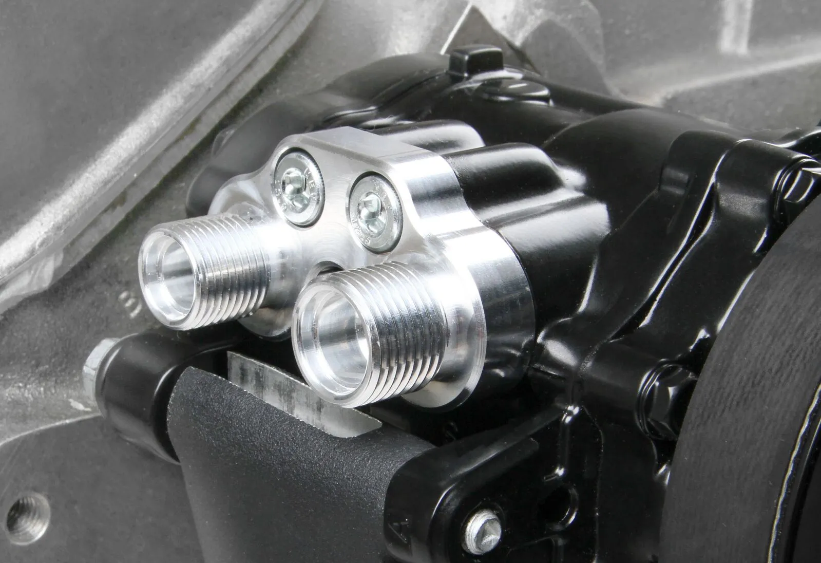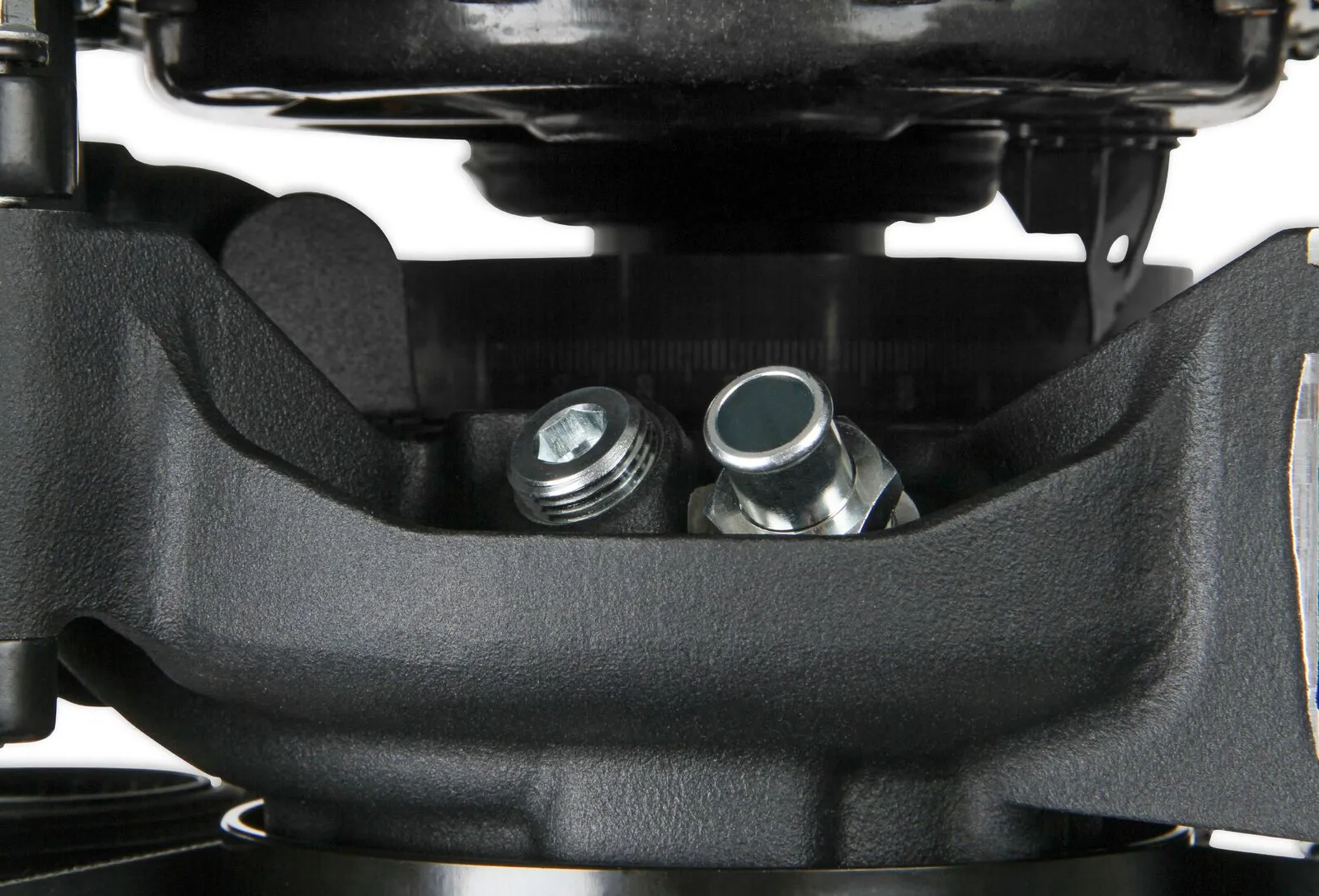 • Hidden thermostat bypass and heater hose ports with NPT line adapters included