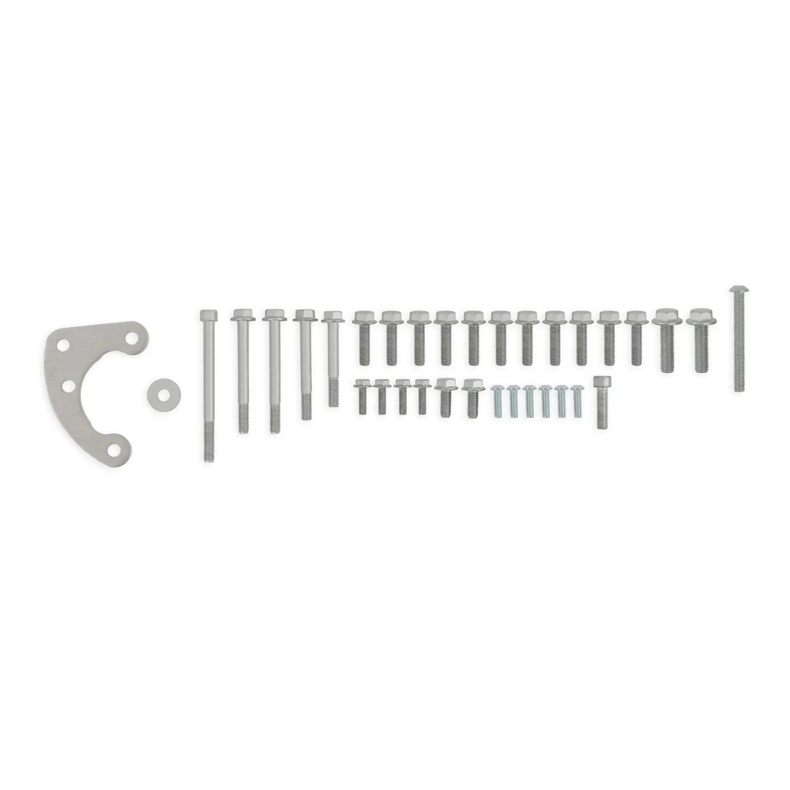 The accessory drive components in this system can be configured in several different ways. For example, there are alternator options available for different performance and electrical demands. Also, deleting the A/C and/or P/S are options. This "base kit" supplies all but the components with options. If you purchase a "Holley complete kit," all these options are already chosen for the most common, cost-effective combination.