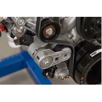 Holley's high-mount accessory drive has everything pulled up and in tighter than other options. The patent pending accessory drive incorporates the timing cover, water pump, alternator, A/C and P/S. This system works with the factory crank pulley, as well as aftermarket damper/pulleys.