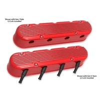 Holley's new 2-Piece LS valve covers are a great way to update the look of your LS engine without the use of complicated adapter systems or the hassle of remote coil relocation. These modular LS valve covers feature an OE height, internally baffled LS valve cover base with integrated coil mounts for popular Gen I and Gen V style LS coil bodies (coils not included), and a vintage style finned overcover that hides the unsightly LS coils and messy wiring harness - allowing the full performance benefits of coil-on-cover ignition setups without the robotic styling. Each modular coil cover features a simplified version of our Vintage Series style fins that seamlessly blends with other finned Holley dress-up accessories such as our LS valley covers and 14" round air cleaners. The coil cover also features cast-in provisions for the spark plug boots and coil wiring harness so no extensions or custom wiring is required.