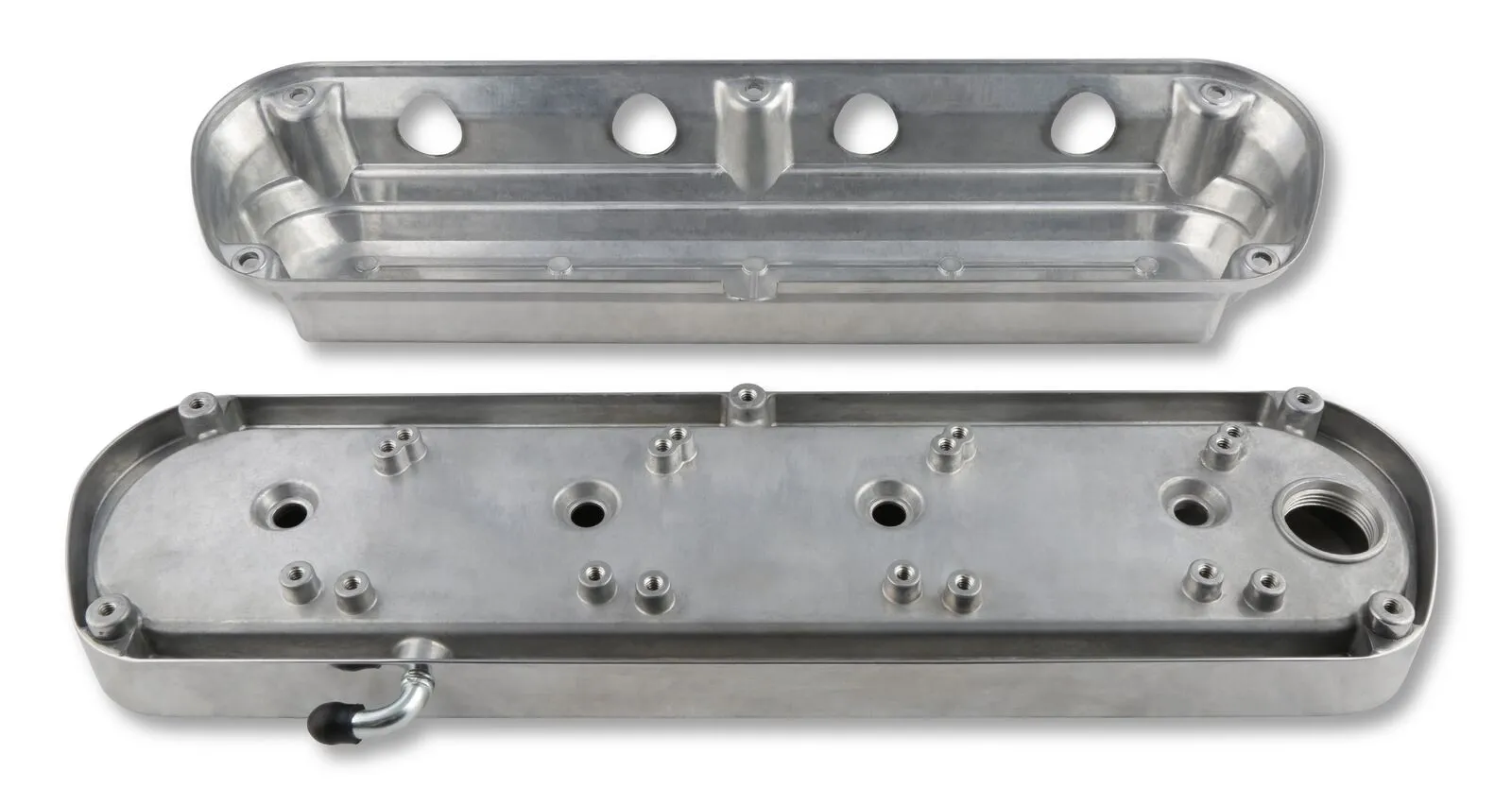 Holley's 2-Piece LS valve covers are a great way to update the look of your LS engine without the use of complicated adapter systems or the hassle of remote coil relocation. These modular LS valve covers feature an OE height, internally baffled LS valve cover base with integrated coil mounts for popular Gen I and Gen V style LS coil bodies, and a Ford style overcover that hides the unsightly LS coils and messy wiring harness - allowing the full performance benefits of coil-on-cover ignition setups without the robotic styling. The coil cover also features cast-in provisions for the spark plug boots and coil wiring harness so no extensions or custom wiring is required.