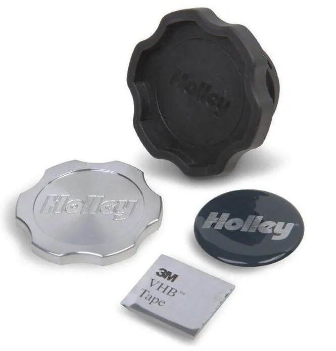Holley's new Oil Fill Cap for LS engines removes the oil fill tube that come stock on LS engines and replaces it with a cap. Our cap screws directly into all stock valve covers! The base is made of the same glass-filled material as the factory to ensure durability. Each cap comes with an aluminum insert that can easily be painted before assembly, and a domed Holley decal can be placed on the aluminum insert or directly onto the cap base!