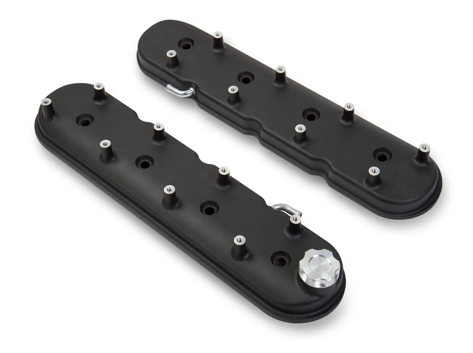 Holley's cast aluminum valve covers for GM LS engines provide a fresh, refined look without the need to relocate the coils. There's no question the factory "coil on cover" design gives the LS that signature high-tech look, but the factory brackets and coil location leave room for improvement. Clean up that signature look with Holley's LS Valve Covers! They incorporate a radiused shape, angled coil mounting, and a billet fill cap. Plus, the coils mount directly to the cover with no need for a bracket in-between. They fit most popular LS series engines and come in Black Textured, Satin, Natural Cast, and Polished. Or, paint to match your vehicle's theme!