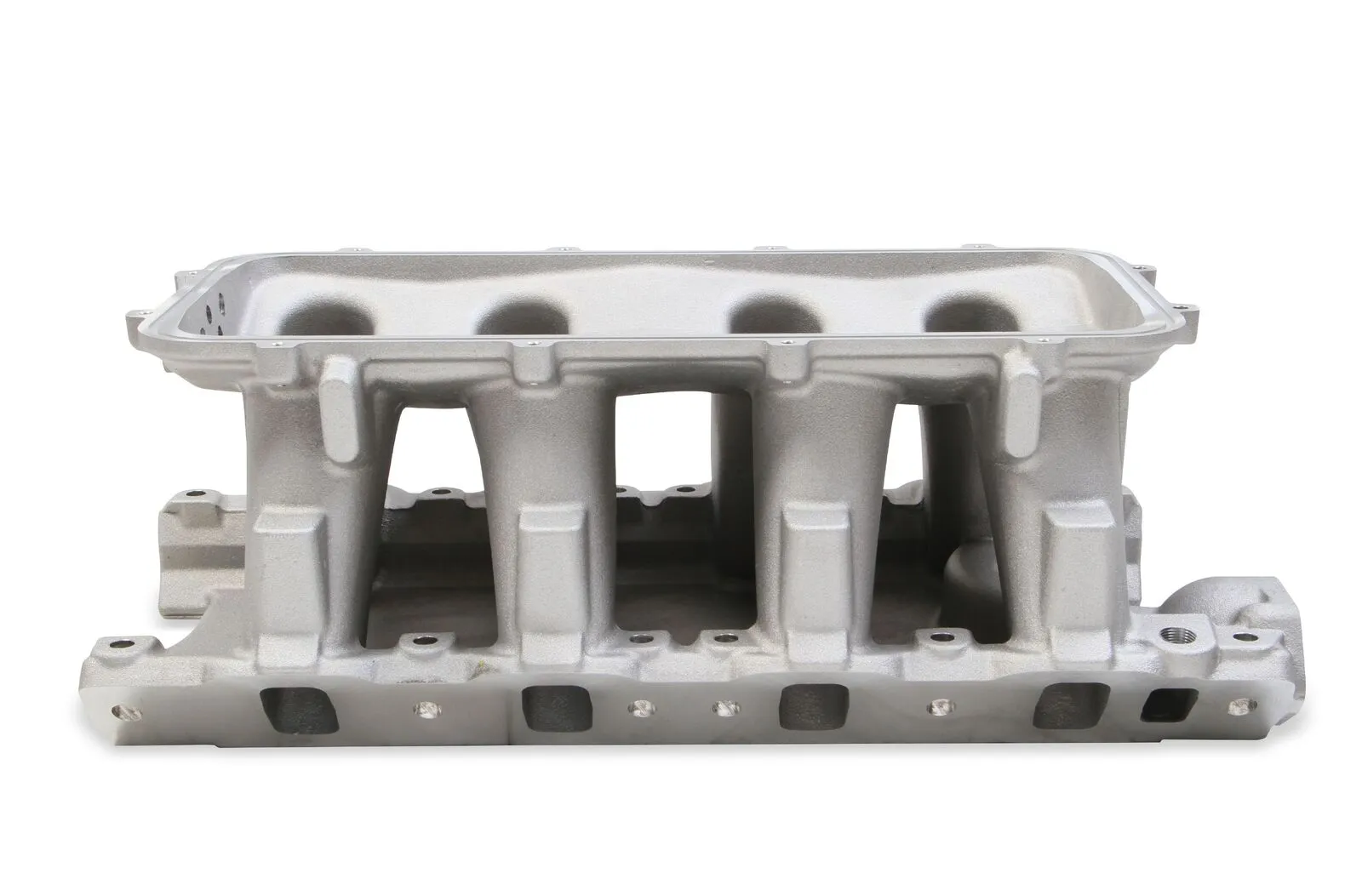 The Hi-Ram manifold line has a new addition for the 351W Ford application. The runner length and tapered cross section design will perform well for a wide range of engine combinations. The engineering team also redesigned the water crossover passage to allow room for distributor phasing. Aggressive, bold, race-bred styling will make bad intentions clear for drag race, muscle car, marine, off-road, sandrails, pulling trucks, track, street-rod applications and more!