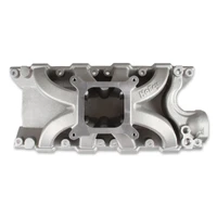 The new single plane intake manifolds are designed to provide a broad RPM powerband for high-performance street/strip engine applications to a maximum engine speed of 7500 RPM. The carbureted manifold has a 4150 flange to work with all mechanical secondary square bore carburetors. These intake manifolds are designed to accept most stock hardware and accessory brackets, but offer performance features like better plenum and runner geometry for improved charge airflow. The isolated design of the air/fuel passages helps to increase charge air density and performance.
