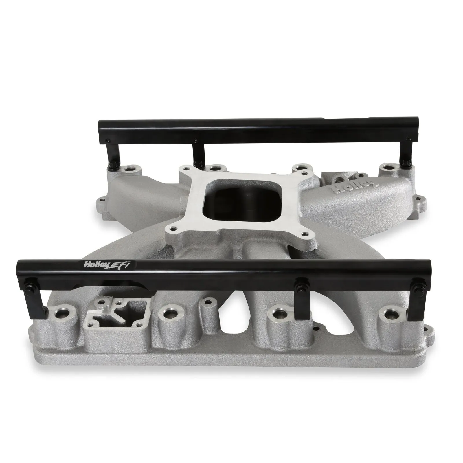 300-930 and 300-930BK are designed for 4150 type throttle valves. Included are billet fuel rails along with mounting brackets for either Bosch EV-1 type fuel injectors or most Gen III Hemi OEM injectors.