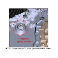 For certain applications, higher than normal oil pressure is required. Typically, the oil pan must be removed to change the pressure spring on an oil pump. The Holley oil system allows direct access to the spring through the access port on the bottom front of the pan. Holley high-pressure spring P/N 302-102 can be purchased and installed to increase oil pressure by approximately 10 PSI at higher RPMs. To change the spring, remove the port plug, spring, and plunger. In some cases, the plunger may stay in the port. Make sure when reassembling the plunger is on top of the spring and oriented correctly.