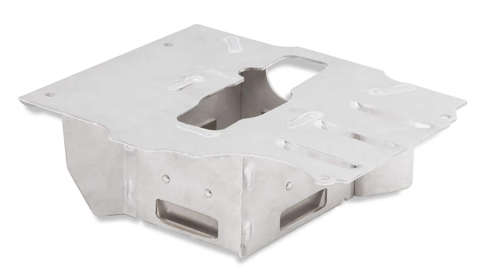 The baffle is fabricated from sheet aluminum joined by TIG welded joints. Directionally positioned one-way trap doors allow oil flow towards the oil pump pick-up but not away. This baffle is designed to be used in the Holley P/N 302-3, 302-3BK, or 302-5 LS Swap oil pans with the standard pickup, and is a drop-in replacement for the standard tray baffle.