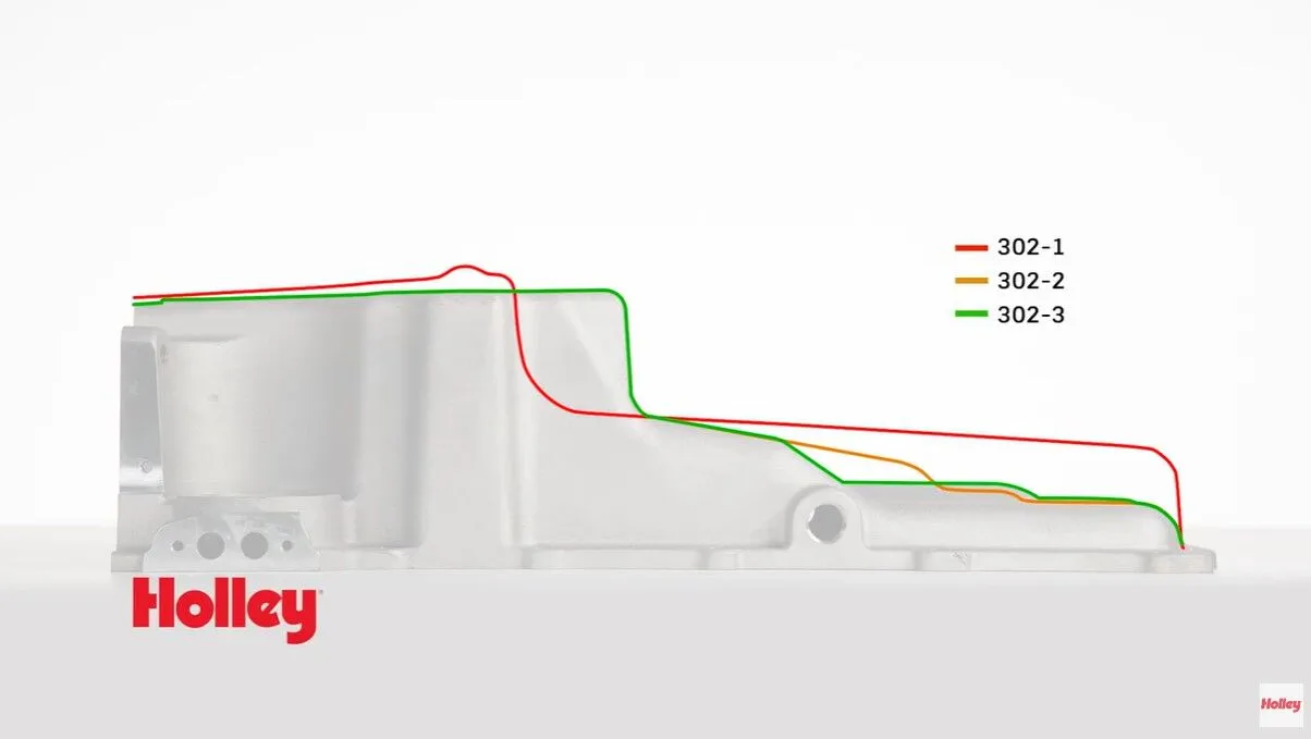 Holley engineering has taken their LS Swap oil pans to the next level! The 302-3 design has even more sump clearance, includes two 1/2-inch NPT oil return bosses, and can clear a 4.00-inch stroke crankshaft. Just like the 302-2, the new designed 302-3 will fit the 1955-1987 GM Muscle Cars and Trucks that need a little more clearance in the front of the oil pan. However, the new design will also fit the Ford Fox body Factory K-member and was designed to clear the Fox Body rack and pinion too. It's a win-win for more LS conversions.