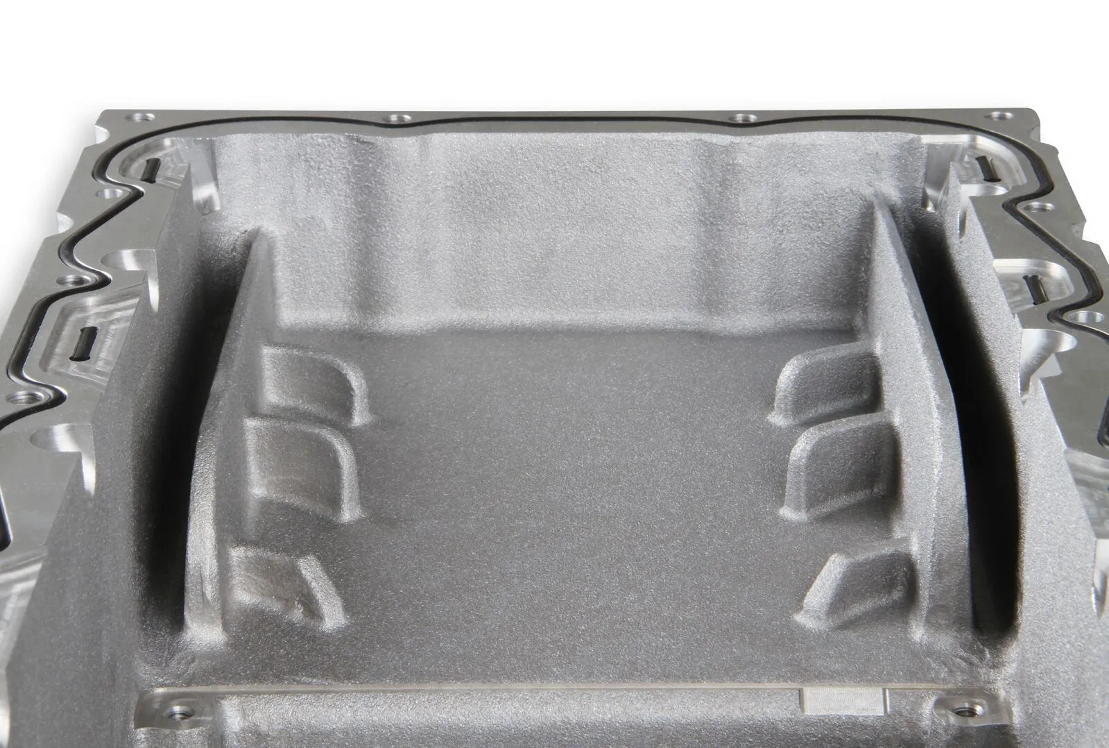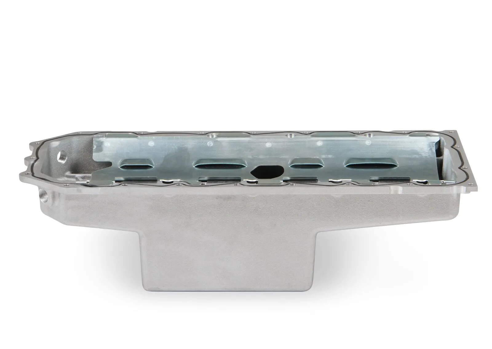 The cast aluminum construction & integrated windage tray on the oil pans combined with o-ring sealing provide an attractive leak-free solution for your engine swap. Complete oil pan kit that includes all the parts needed for installation (i.e. oil pan, pickup assembly, o-ring seal, windage tray, baffling & mounting bolts).